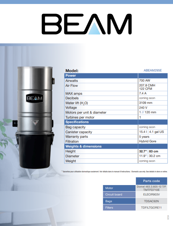 Fiche technique du moteur Domel à flux traversant (TMTFD710E)