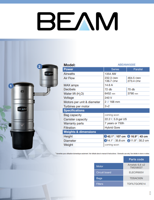 Unité satellite Moteur Ametek tangentiel 122580-27 240v : FM25802701