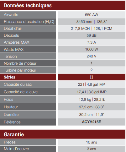 Garantie mains-d'œuvre: 3 ans